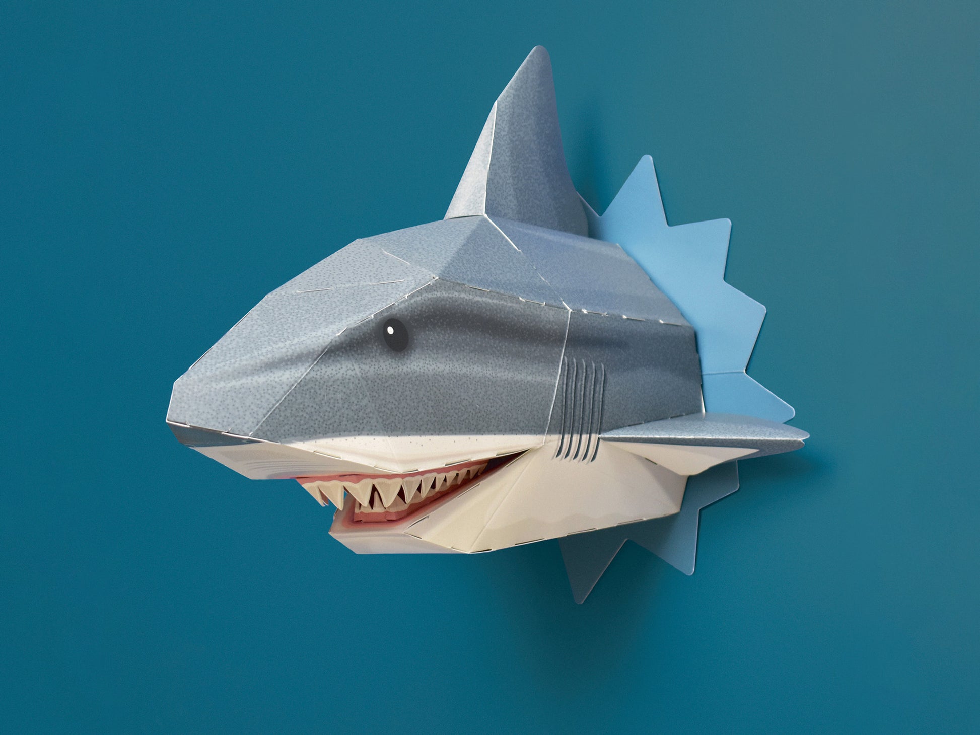 Build your own model shark head and tail to decorate your room as if it's swimming through the wall!